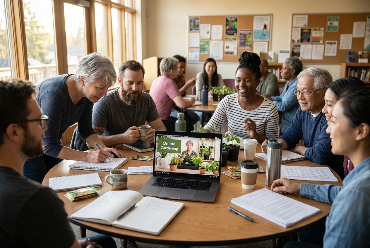A modern gardening in community hub where people come together to share ideas, learn from trusted voices, and move forward — not just consume content.